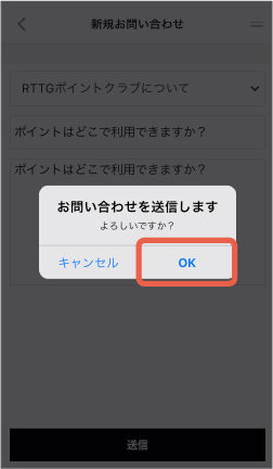 送信確認のメッセージがでますので、よろしければ「OK」をタップしてください。