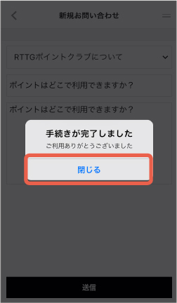 お問い合わせが完了しました。「閉じる」をタップしてください。